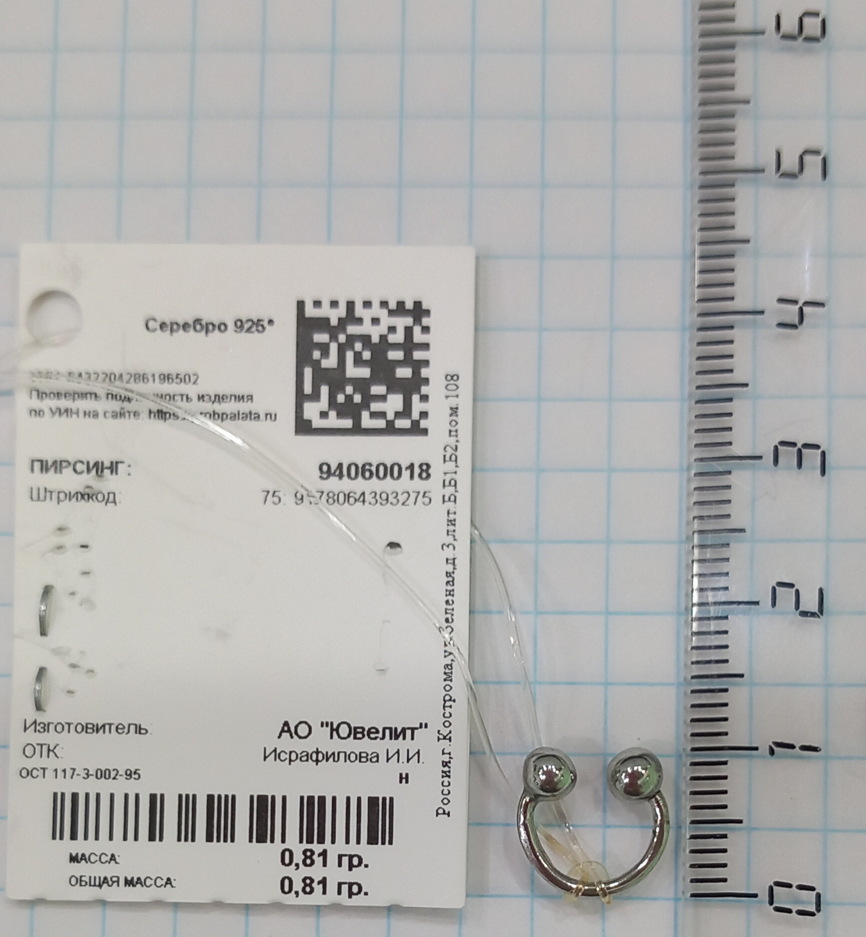 94060110 Пирсинг (Ag 925)