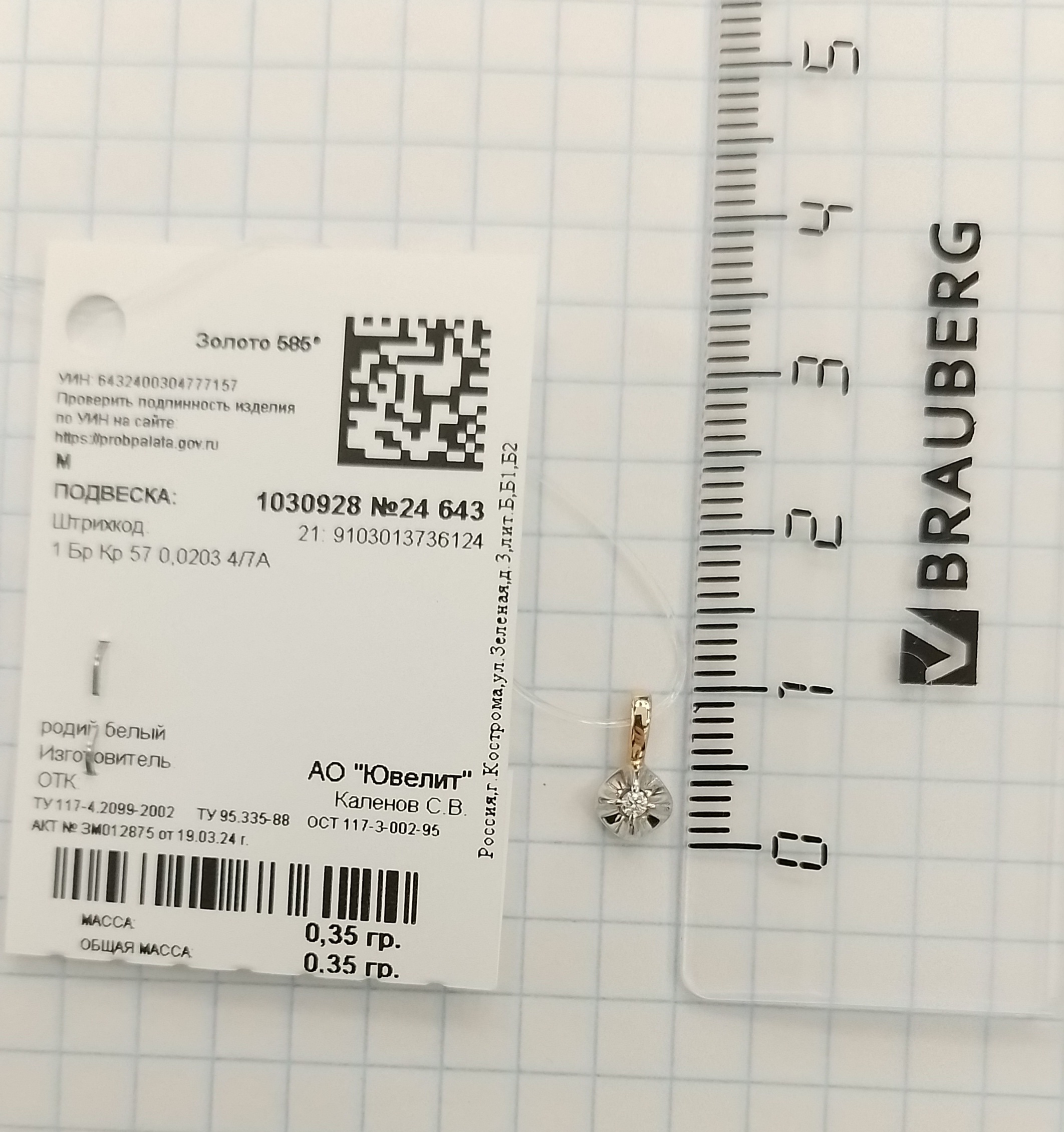 1030928 Подвеска (Au 585)