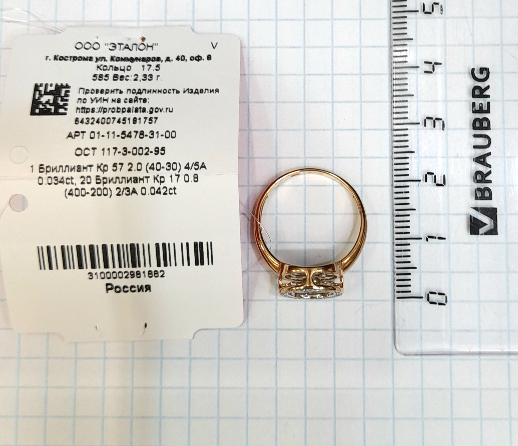 01-11-5478-31-00 Кольцо (585)