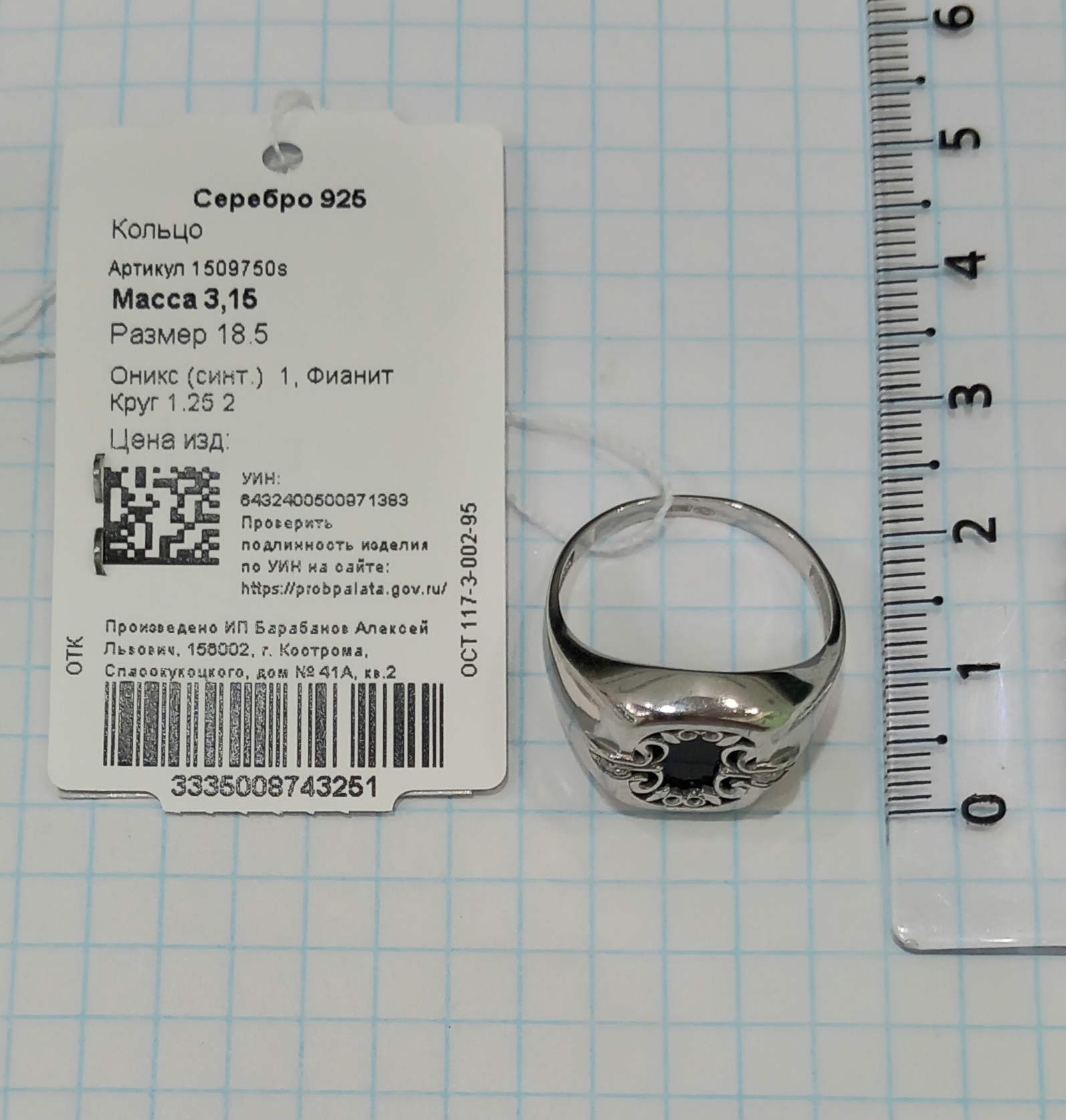1509750s Кольцо 925