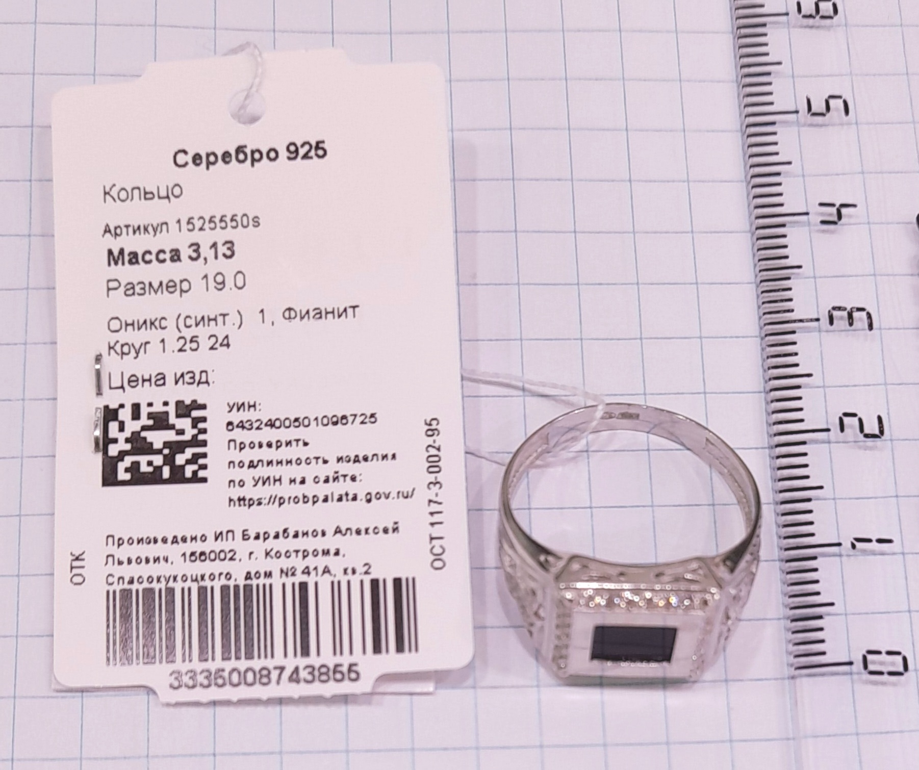 1525550s Кольцо 925