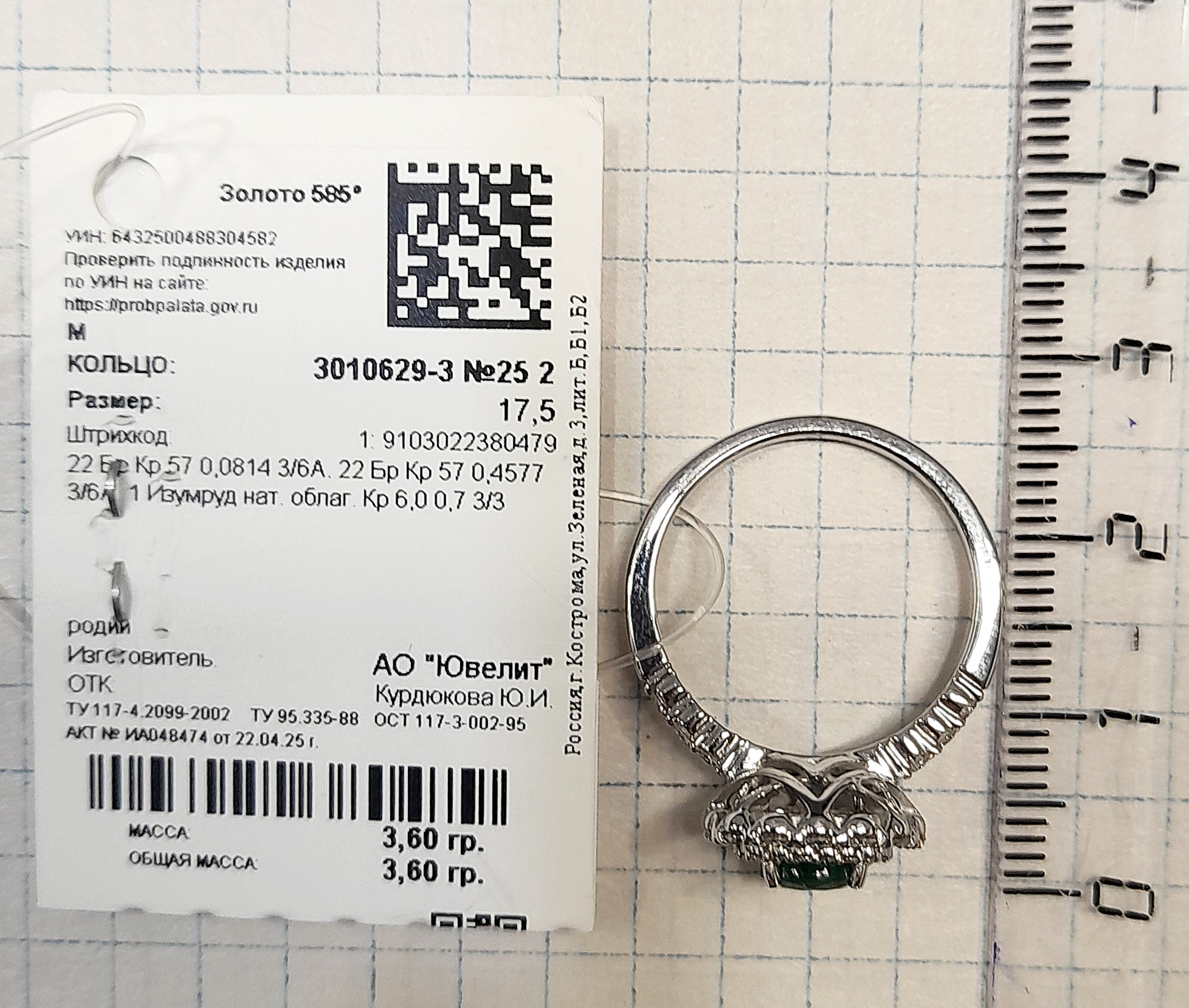 3010629-3 Кольцо (Au 585)