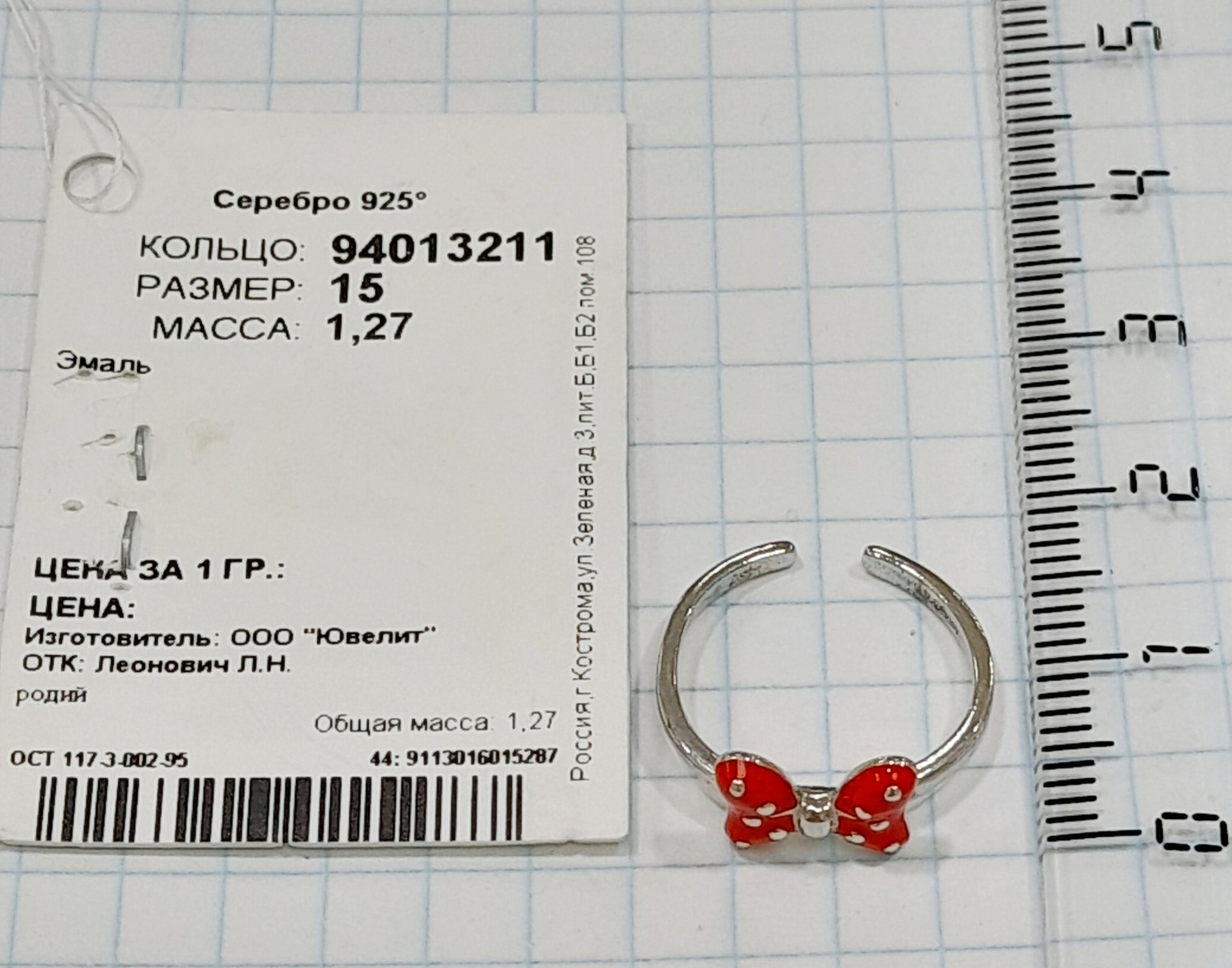 94014697 Кольцо (Ag 925)