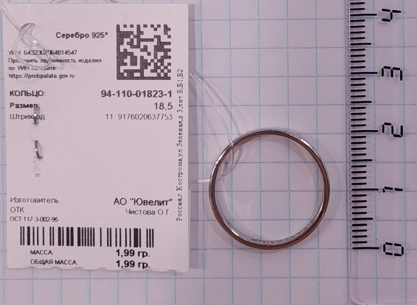 94-110-01823-1 Кольцо (Ag 925)