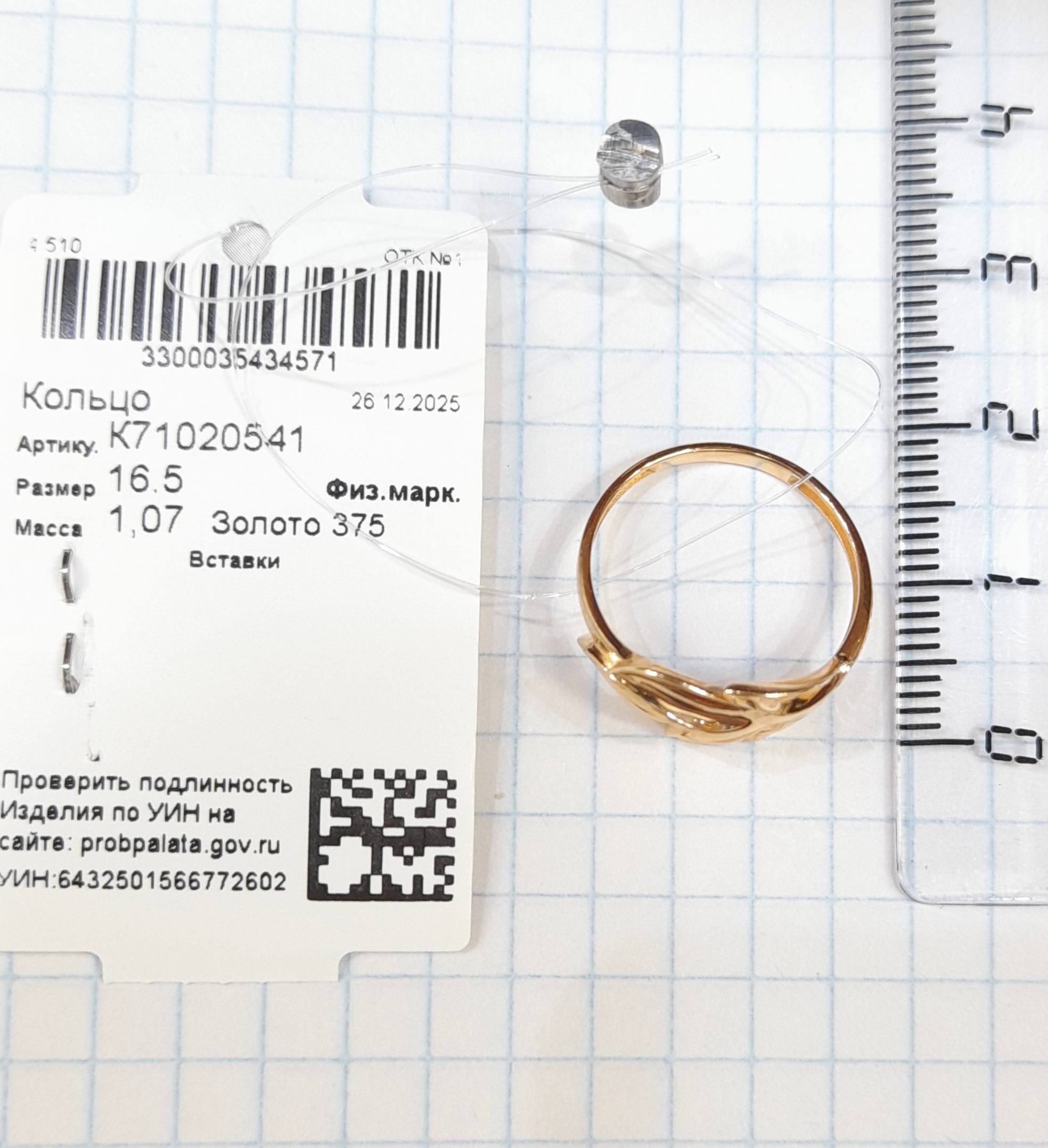 К71020541 Кольцо (Au 375)